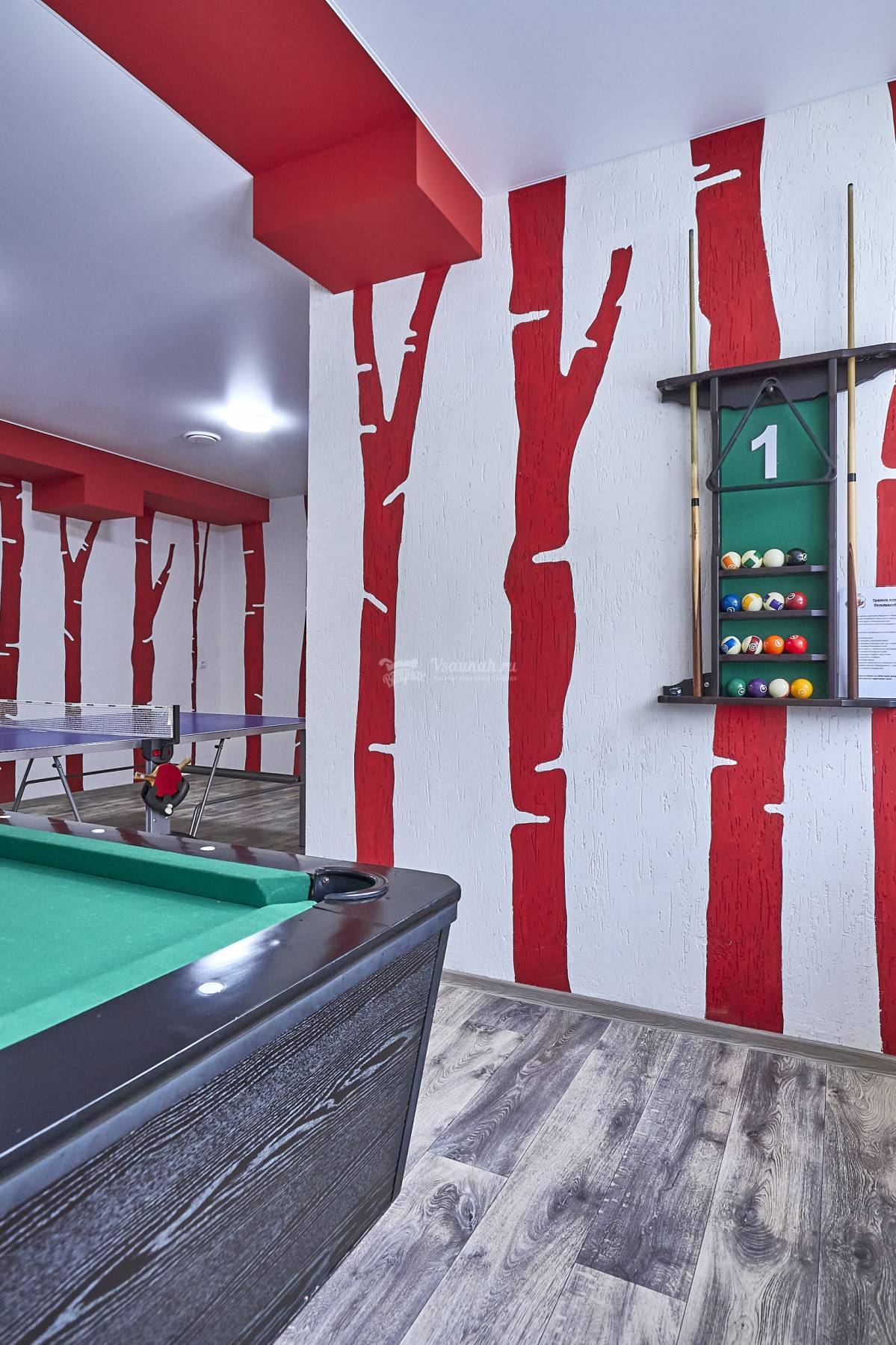 Кальян, Бильярд, Настольный футбол, Аудиоцентр, Телевизор, Массажное кресло, Караоке, Холодильник, Микроволновая печь, Чайник